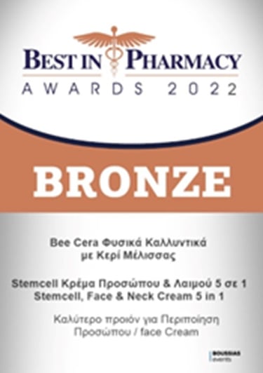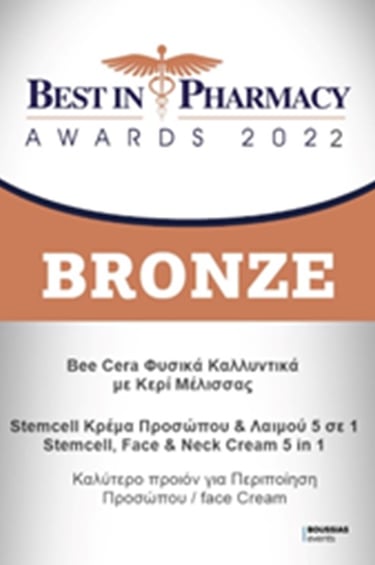 Η καινοτόμος Stemcell Κρέμα Προσώπου & Λαιμού 5 in 1 απέσπασε Χάλκινο Βραβείο στην κατηγορία Καλύτερο Προϊόν Περιποίησης Προσώπου / Κρέμα Προσώπου στα Best in Pharmacy Awards 2022. Η διάκριση αυτή αναγνωρίζει την αποτελεσματικότητα και την ποιότητα των προϊόντων μας. Μια σημαντική αναγνώριση που μας εμπνέει να συνεχίσουμε την πορεία μας στην καινοτομία και τη φυσική φροντίδα.